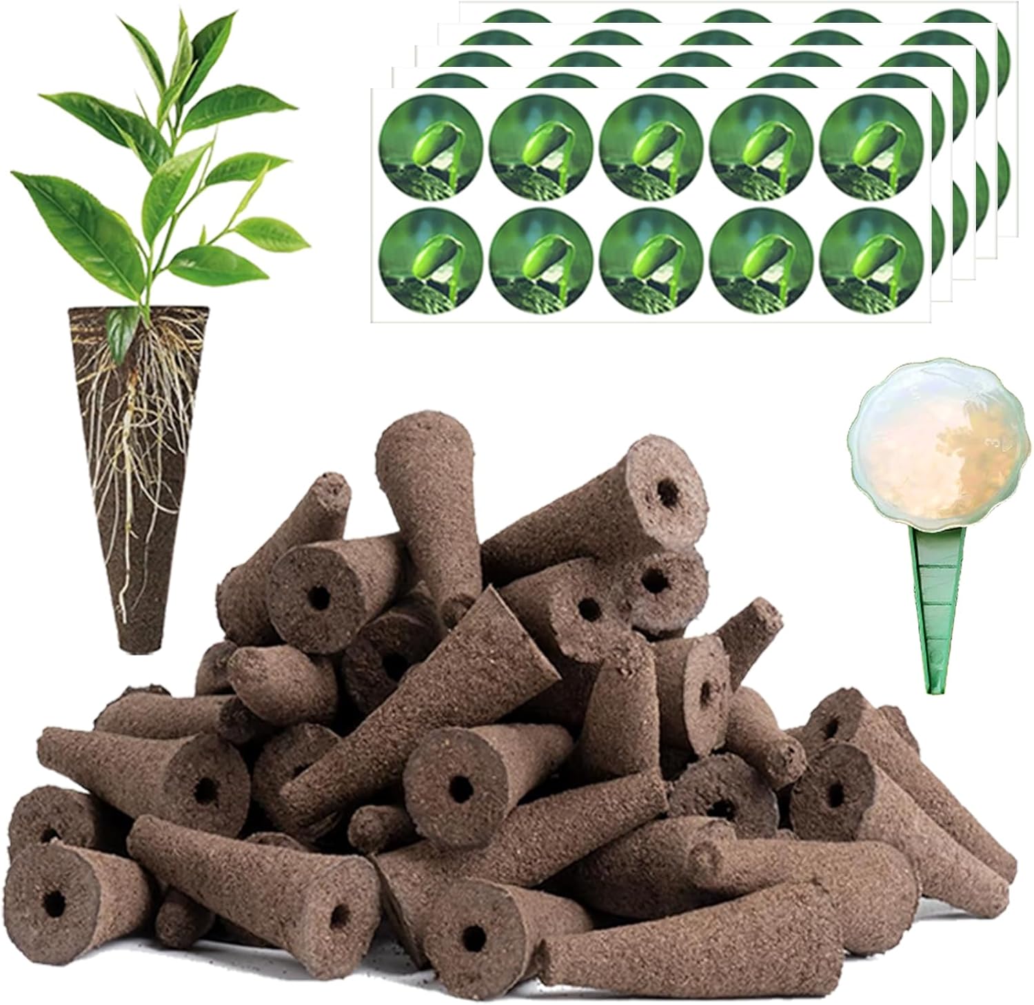 Name: Hydroponic Grow Sponges kit Material: peat/Pvc Specification: Piece Quantity: 101pieces Grow Sponges: 5 × 1.8cm/2× 0.7in,50Pcs Pod Labels: 4.3 × 13.5cm/1.7× 0.5in,50Pcs Seeder: 12.5 x 6.7cm/4.9 x 2.6in,1Pcs Application: Hydroponic ,Soilless cultivation and transplanting High Compatibility: Our grow sponge size after soaking measures 0.9 inches in diameter and 2.58 inches in height, which is compatible with most hydroponics growing system like AeroGarden,Idoo ,Ahopegarden, and other brands Premium Growing Medium: Crafted from high-quality peat, seed pod sponges serve as an exceptional growing medium that is fertile and pH-balanced, ideal for seed germination and root development.