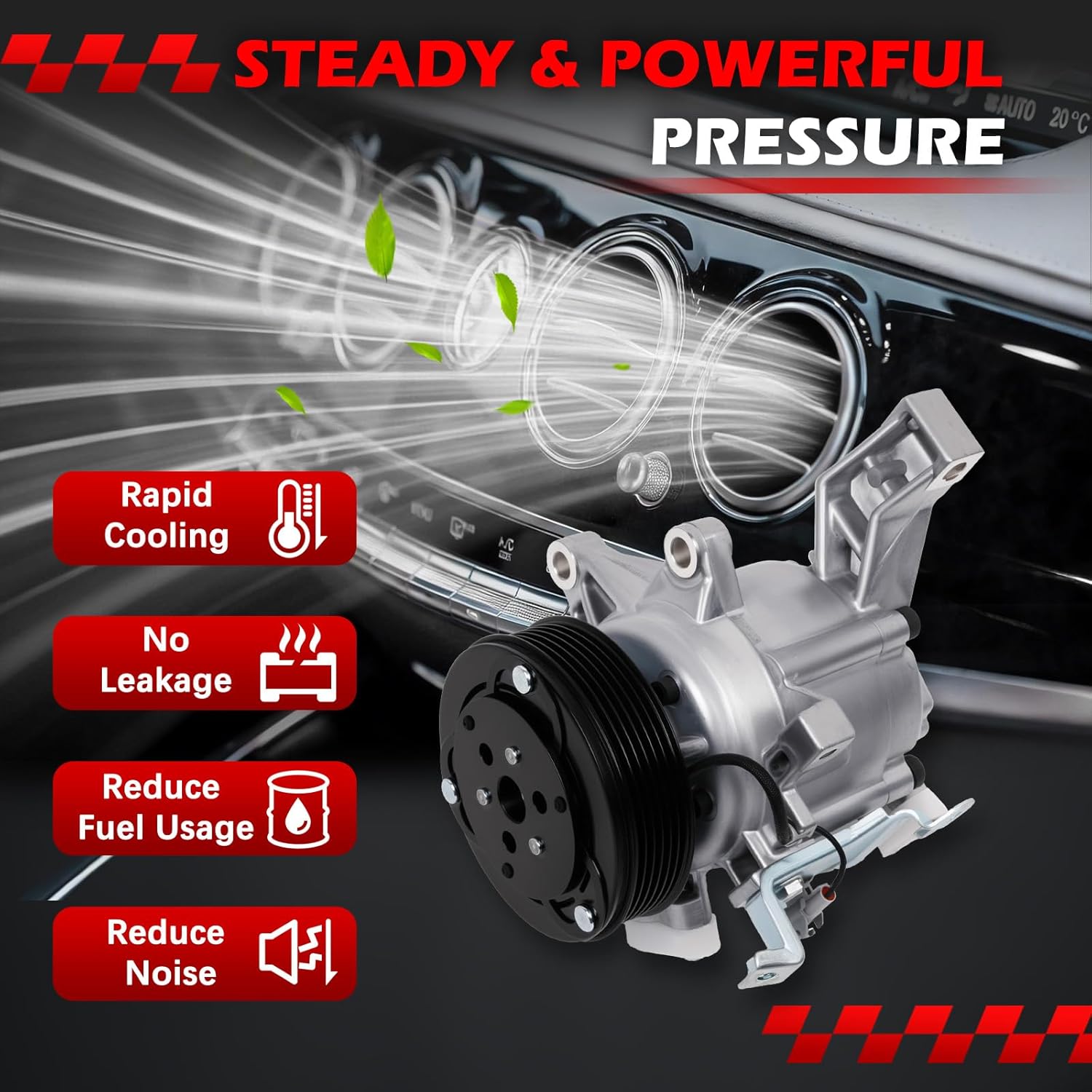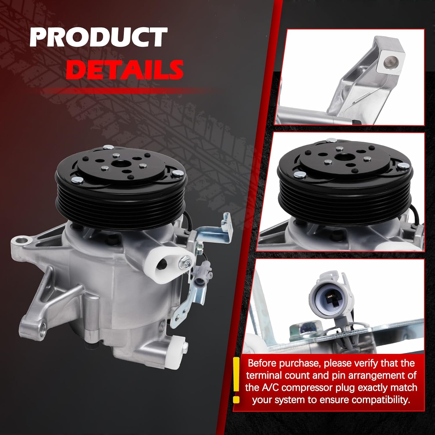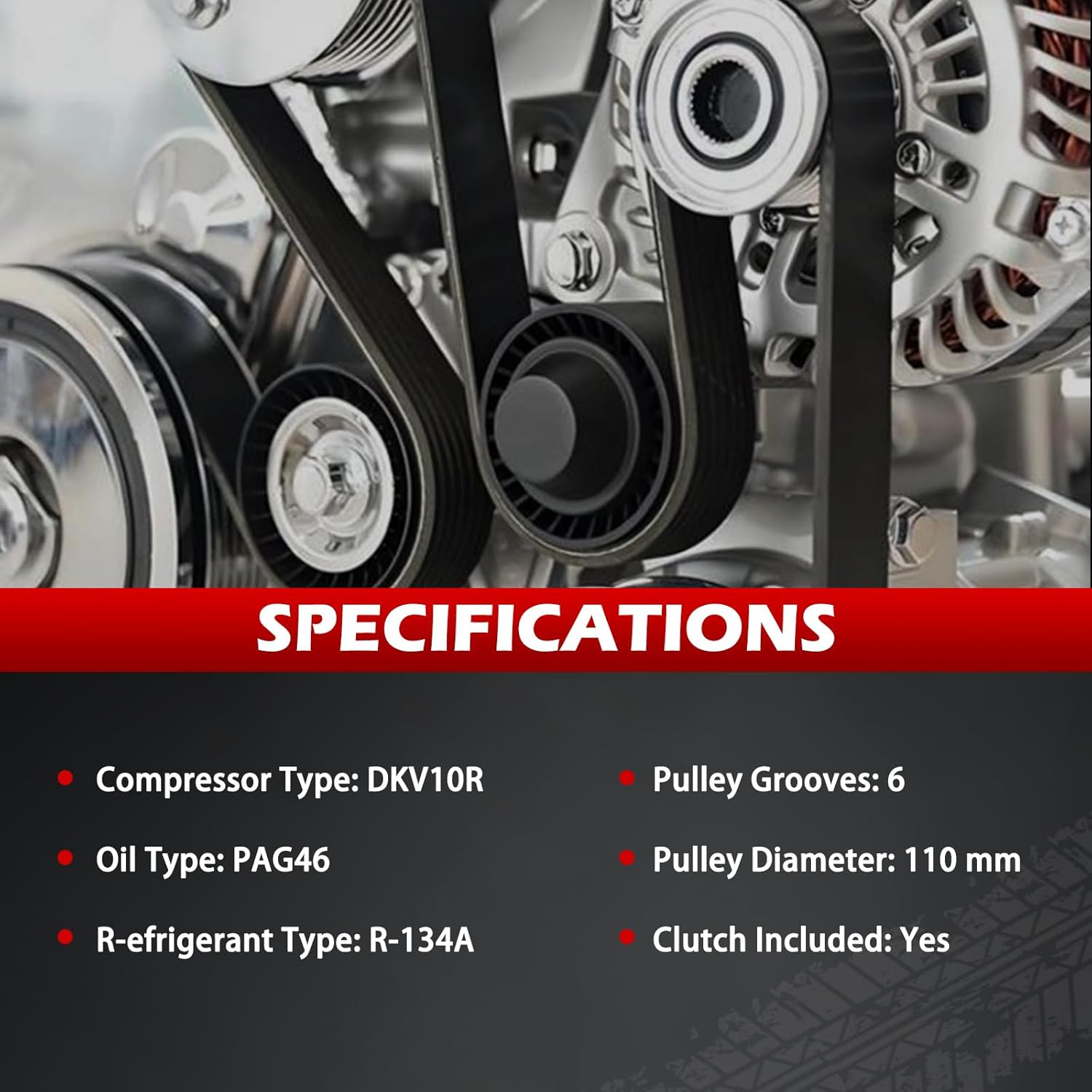 Fits The Following Vehicles: for 2012-2016 Subaru Impreza 2.0L H4 for 2014-2018 Subaru Forester 2.0L H4 for 2014-2018 Subaru Forester 2.5L H4 for 2013-2015 Subaru XV Crosstrek 2.0L H4 for 2016-2017 Subaru Crosstrek 2.0L H4 NOTE: Compatible with gasoline engines only. Not for electric or hybrid vehicles. OE Part Number: 73111-FJ040, 73111FJ041, 73111FJ050, 73111FJ000, 73111FJ040, 58492, Z0021226A Note: Please confirm if your vehicle's make, model, year, and part number match before placing your order. Specification: ①Compressor Type: DKV10R ②Pulley Groove Quantity: 6 ③Pulley Diameter: 110MM ④Clutch Included in Package: Yes ⑤Pre-filled with Oil: Yes,150 ml(No oil is needed for first use; adding too much may damage the product) ⑥Oil Type: PAG46 AC Compressor Features: (1) Efficient Cooling: The AC Compressor provides optimal cooling for a comfortable interior. (2) Reliable Performance: Enjoy consistent cooling and smooth operation, even in hot weather. (3) Better Fuel Economy: A functioning AC Compressor reduces engine load, improving fuel efficiency.