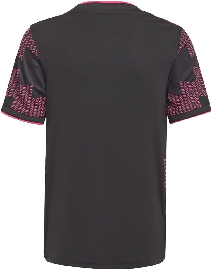 A JERSEY FOR FANS OF THE MEXICAN NATIONAL TEAM. Pink as guava juice. As Las Coloradas. As the taxis honking in the street. Of all the colors that make Mexico vibrant, pink stands out the brightest. Show your support for the national soccer team in this juniors' adidas jersey. The pattern is reminiscent of Oaxacan textiles, though the overall style is anything but traditional.