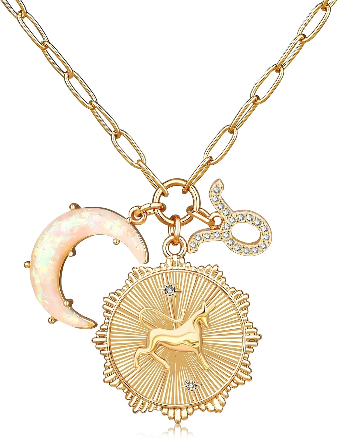 12 ZODIAC PERSONALIZED JEWELRY: Zodiac necklace features the 12 astrological signs of the zodiac with its strong influence on your personality, character, and emotions; Designed with a crescent moon, a zodiac sign and a delicate paperclip chain