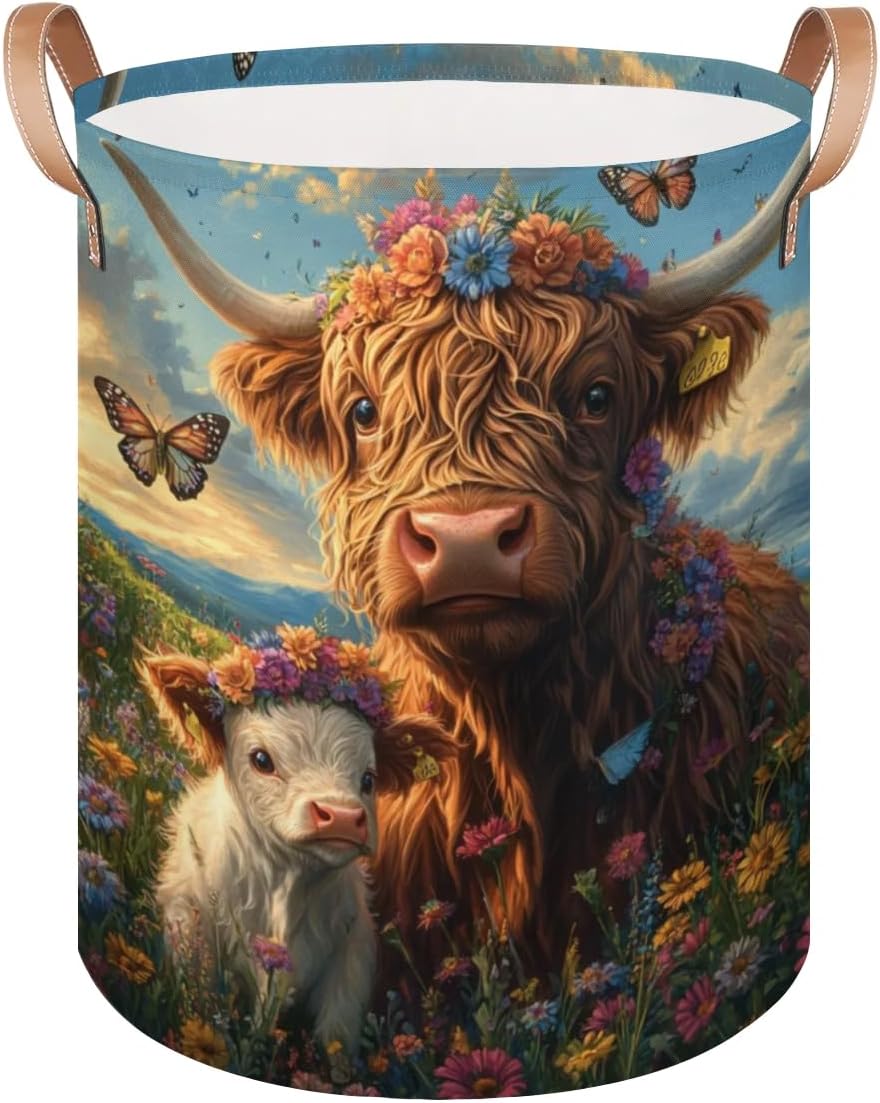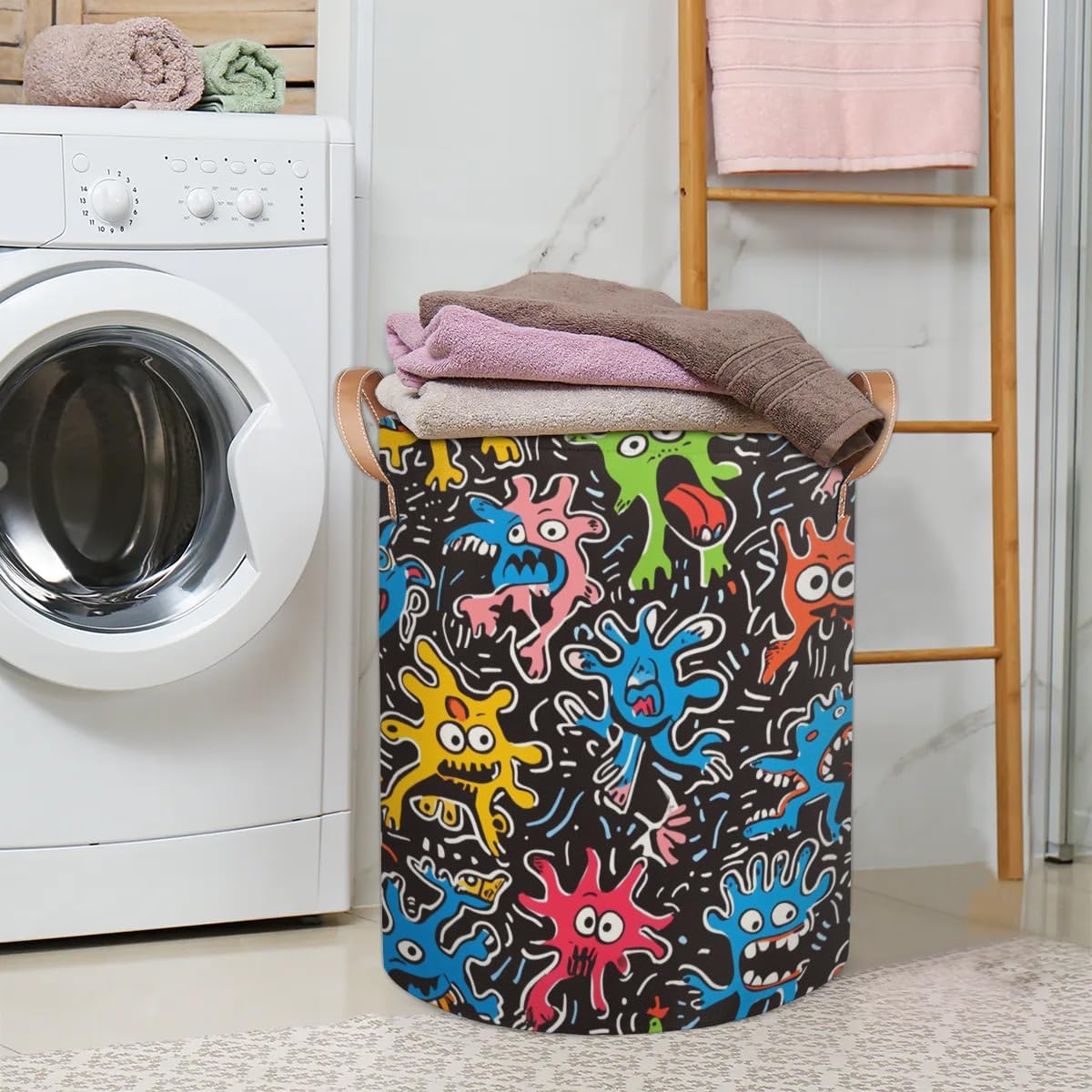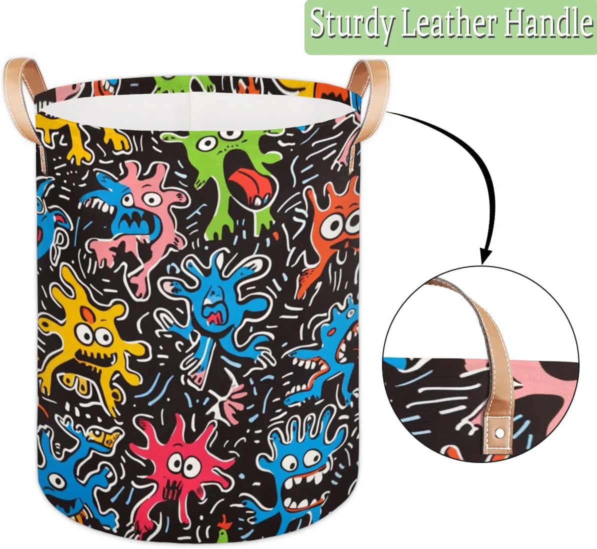 【MULTIPURPOSE】Storage basket will be your good assistant.Great for playroom, craft room, bathroom,bedroom,cloakroom,kitchen,office and automobile cab to store kids toy,clothes,office debris and Family sundries.【FEATURE】1.The laundry basket has a large capacity and can store the whole family's clothes. 2.Laundry basket with two handles, easy to move. 3.collapsible design,you can fold it up when you don't need it,easy to store and save space. 4.The pattern of clothes hamper is fashionable and stylish, It will be great gift for family and a good helper for housewives.