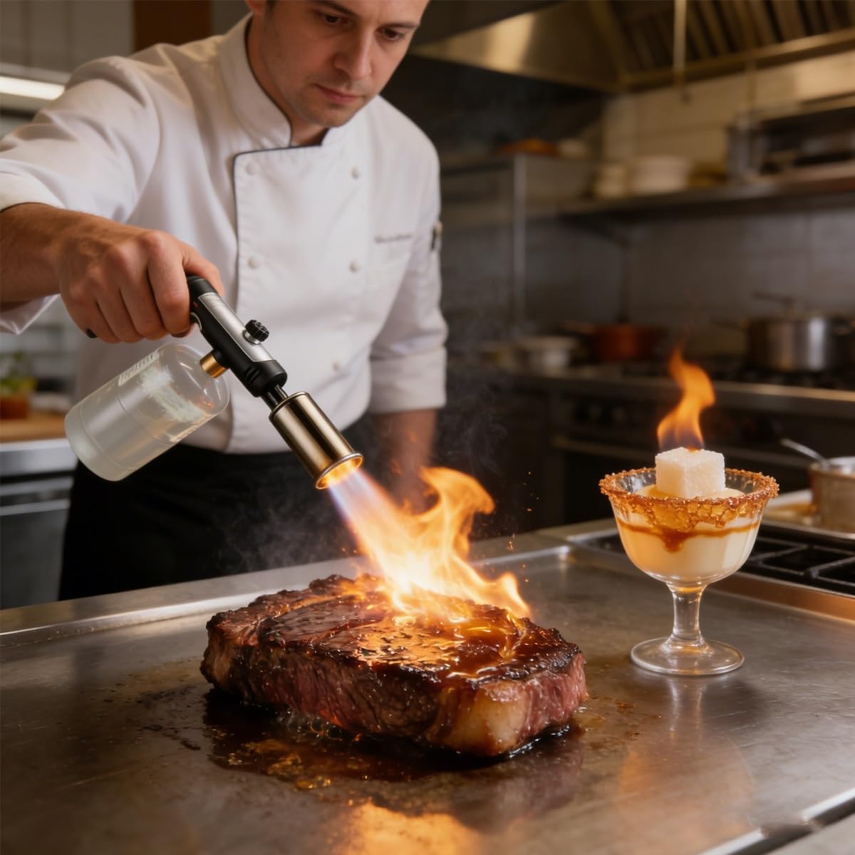 Multi-Purpose propane flame thrower: Meet the demands of various projects with this high-output kitchen torch. In the kitchen, the flame torch is ideal for searing steaks, caramelizing desserts, and baking bread. It's also great for outdoor use, such as barbecues, lighting charcoal or campfires, and weed burning. Additionally, it supports craft projects like soldering and artistic painting to meet diverse needsFeatures:Before use, ensure the gas cylinder connection is securely tightened. When igniting, the optimal button angle is 40-150° at standard temperatures; do not use the maximum power button for ignition. Adjust the angle slightly based on temperature changes to improve ignition success rate. Do not use the torch at a 90-degree vertical angleSpecifications:Product Name: Propane TorchMaterial: Stainless SteelApplications: Barbecuing, Weed Burning, Pipe Thawing, Snow Melting, Igniting Damp Kindling or CharcoalPackage Contents:1pc* Propane TorchImportant Notes:1. Gas cylinder not included2. Actual product color may vary slightly from images due to lighting and screen differences3. Manual measurements may result in minor dimensional discrepancies4. After use, remove the gas cylinder and store it separately to prevent safety hazards