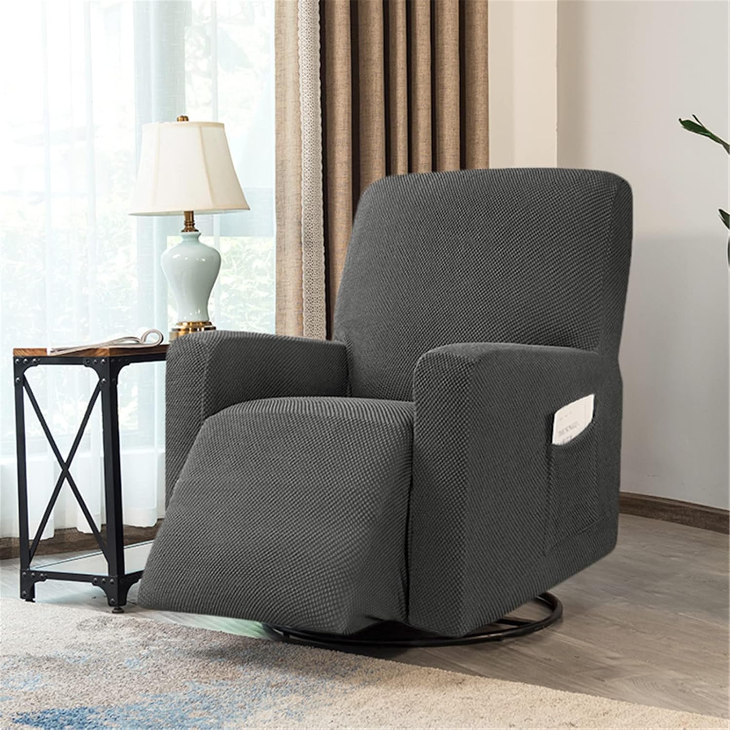 Recliner covers can cover your furniture and give your home décor a different colour. A quick way to protect your furniture and update your home décor. Features: Our recliner covers are made from stretchy jacquard fabric, stretching the material for a perfect fit. The high stretch fabric allows the recliner cover to fit most types of recliner armchairs. It fits snugly around every corner of the recliner, fits highly with the seam detail and covers the recliner completely. The bottom of the recliner cover is elasticated and it stays exactly where you want it to be, preventing it from slipping off. Its side pockets make it easy to hold magazines, newspapers, remote controls or other things to make your life easier. Protects your recliner from stains, spills, scuffs and scratches and is perfect for families with children and pets. Measurement guide: Recliner base width: 76-96cm (30-37.5in) Recliner side width: 67-87cm (26-34in) Recliner height: 73-93cm (29-36.5in) Recliner back width: 60-85cm (24-32in) Package include: Recliner cover x 1 Caution: Due to manual measurement, please allow 2cm measurement deviation. We would appreciate your understanding. Due to light and screen differences, the colour of the item may be slightly different from the picture. All our items are brand new from the factory, it is normal that some may have a small smell, please do not worry, it will disappear soon. Service: If you have any problems or questions, you can contact us directly by email and we will try our best to solve them for you.