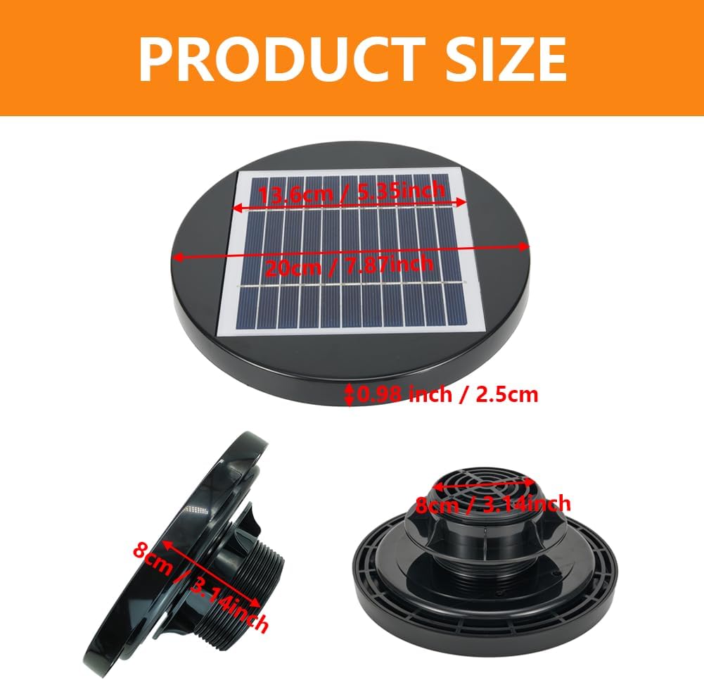 • EFFICIENT SOLAR DRIVE: Solar powered roof vent fan equipped with high-quality polycrystalline silicon solar panels (5.5V, 2.5W), it can work without direct sunlight. Automatically activated within 20 seconds when there is sufficient sunlight, continuously expelling hot air.
