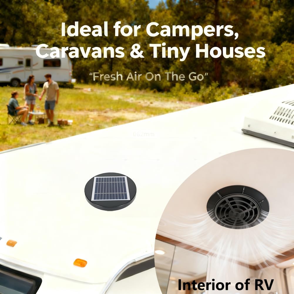 RV Solar Powered Roof Vent Fan, Low Profile Marine Exhaust Fans, Quiet Top Extraction Ventilator for Garden Sheds/Greenhouses/Bathroom/Toilets/Attic & Campers/Caravans, Extract 33 CFM