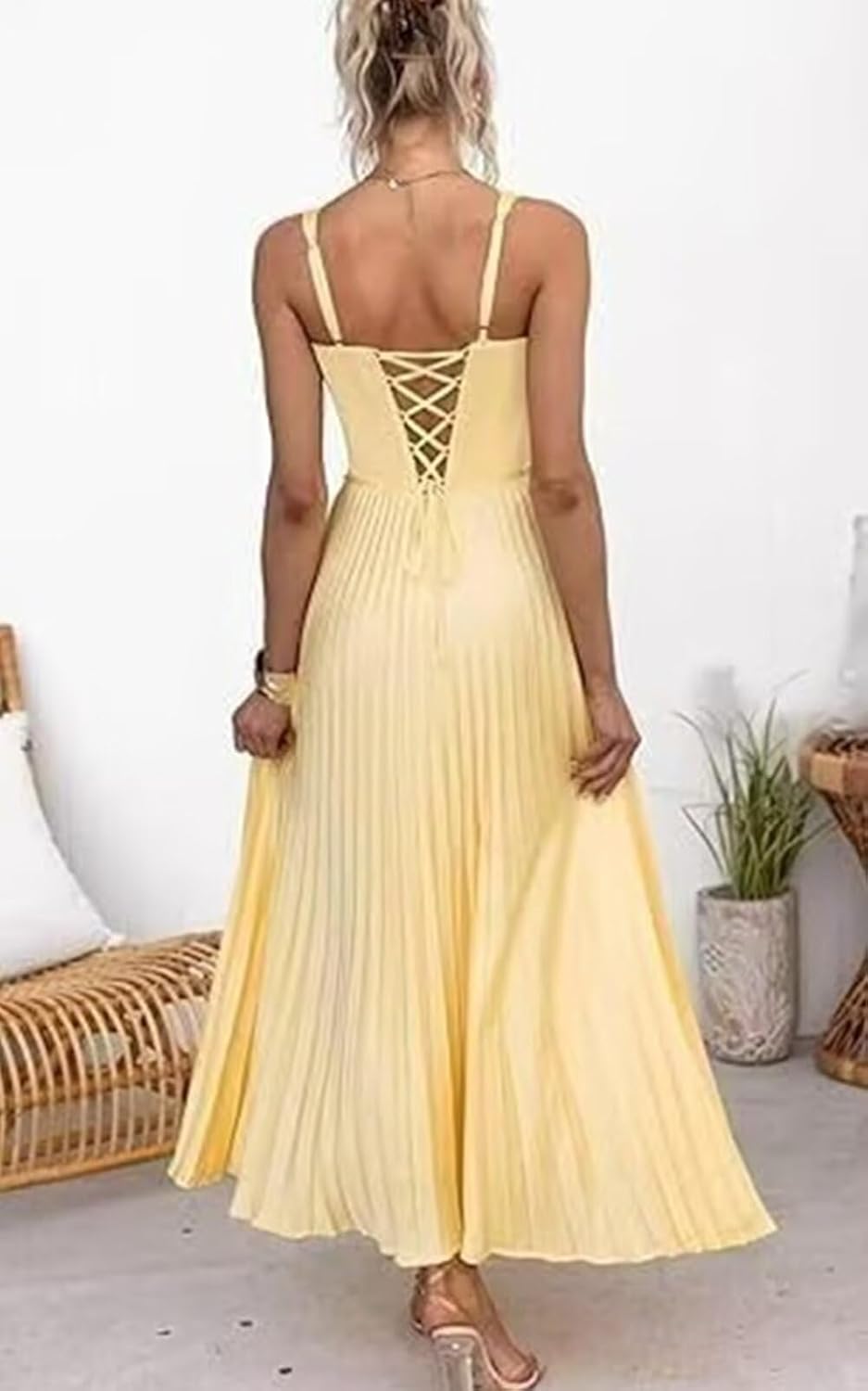 | Embellishment Feature | A Line, Flowy, Maxi, Pleated, V Neck |