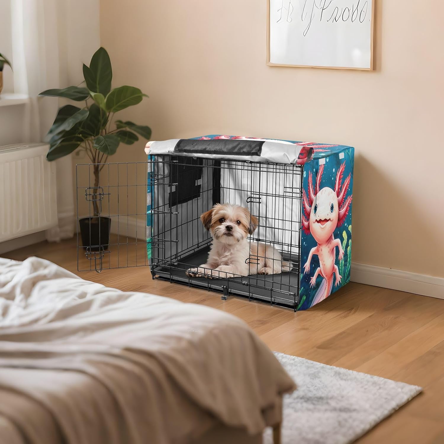 High-Quality Material – Crafted from 600D silver-coated oxford fabric, this kennel cover offers weather-resistant protection against rain, wind, and sunlight. It helps to keep your pet safe and comfortable, ensuring the crate remains in good condition.Fast and Easy Setup – The fastening system allows for a quick and straightforward installation process, making it ideal for pet owners who need an efficient solution for their dog crate cover.Breathable Design – With mesh windows on all sides, this dog cage cover ensures consistent airflow, which helps keep your dog cool and comfortable while inside the crate. The breathable mesh also provides privacy and reduces stress.Sturdy and Wind-Resistant – Four tie-down straps securely fasten the cover to the crate, ensuring it remains stable even in windy conditions. This feature prevents the cover from being blown off or moved out of place.Convenient for Travel and Home – This versatile dog crate cover is designed for both home and travel use, providing a reliable solution for your pet's needs. Whether you're indoors or on the move, it offers excellent protection for your dog’s crate.