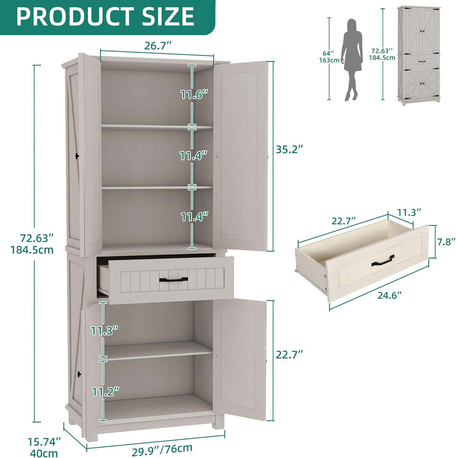 | Storage Options | 4 doors, 1 drawer, 5 shelves |